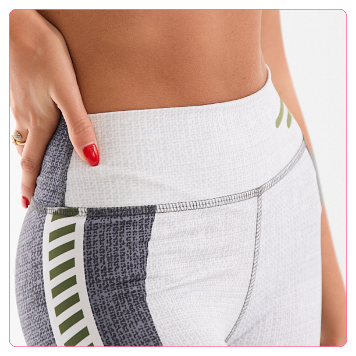 - Lycra sublimada: suave, liviana y con la elasticidad justa 🧺. Su estampa en tonos verde y gris no se va con los lavados y le suma actitud a cualquier look ✨