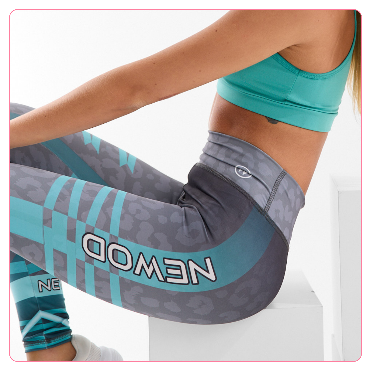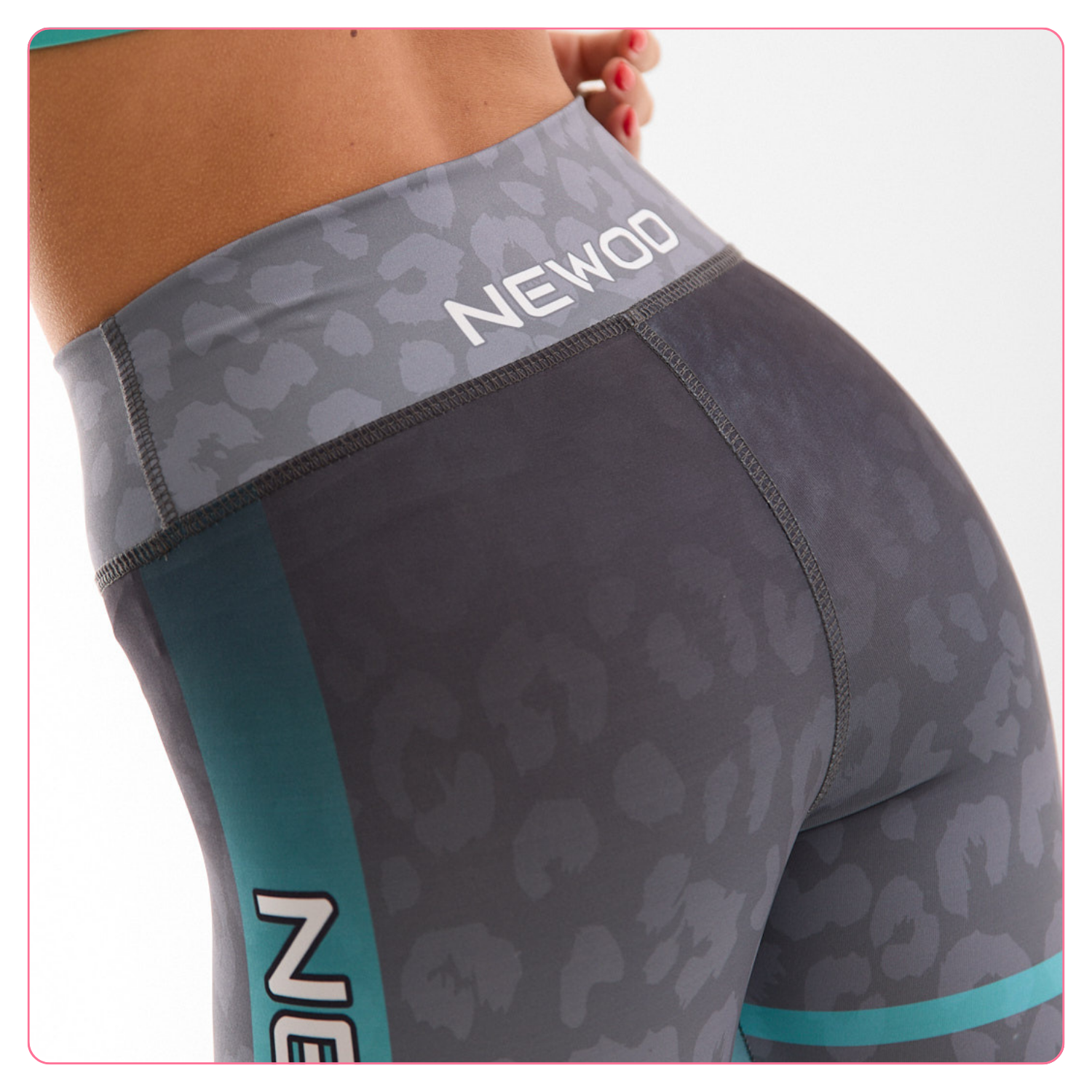 - Lycra sublimada: suave, liviana y con la elasticidad justa 🧺. El estampado animal print en gris con franjas turquesa y detalles gráficos mantiene su color intacto lavado tras lavado ✨