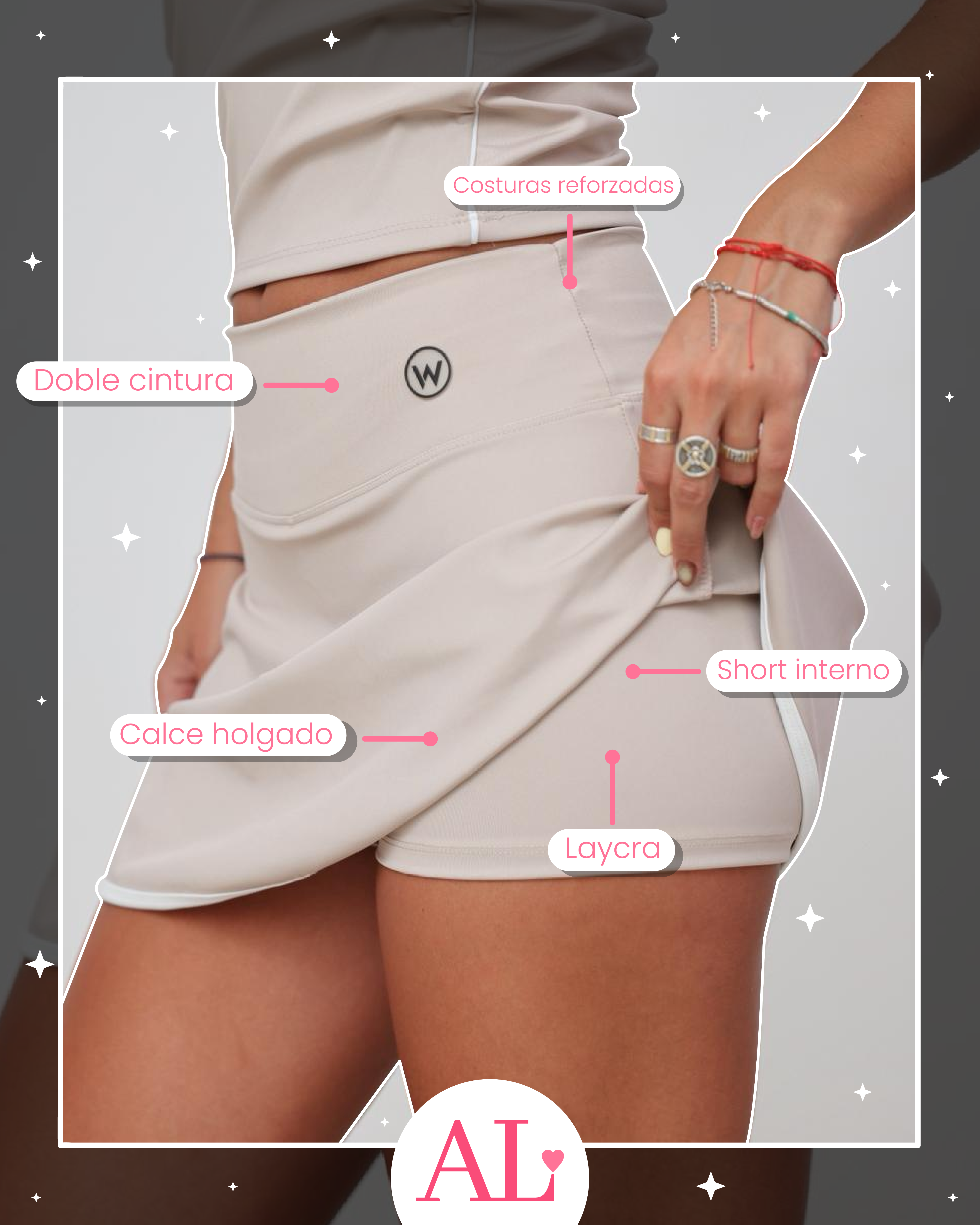 La Pollera Curt combina la estética de una pollera con la comodidad de un short. Es fresca, práctica y súper favorecedora para entrenar, moverte o usarla en un look urbano.