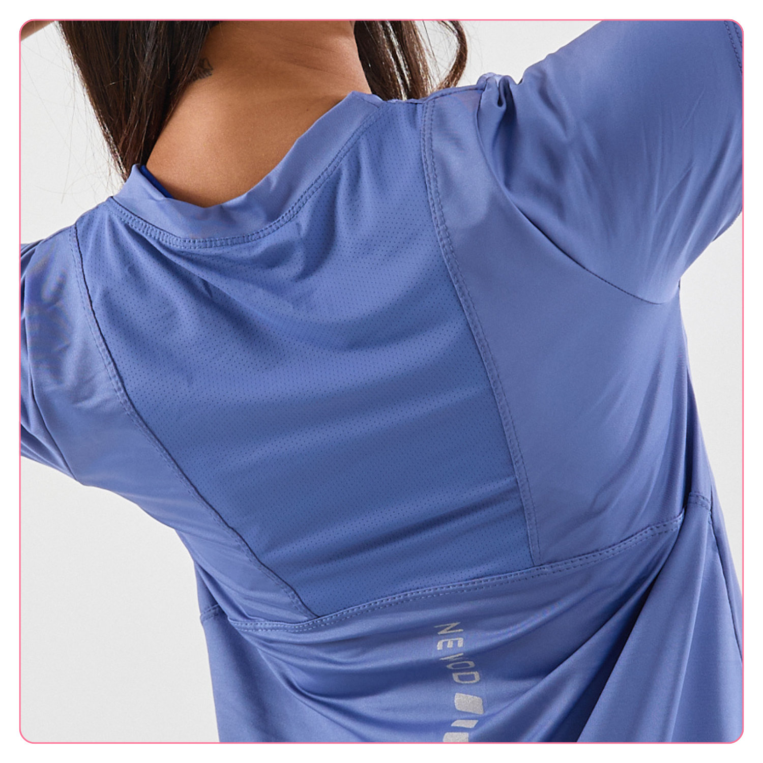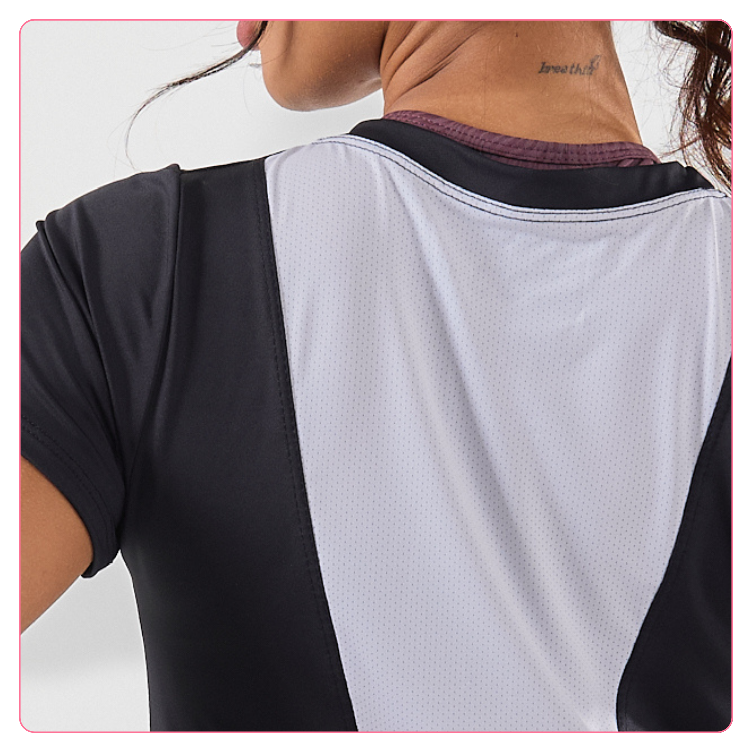 - 🏃♀️ Diseño en la espalda: En la parte de atrás está combinada con tela dry fit, lo que la hace más fresca y cómoda para todo el día.