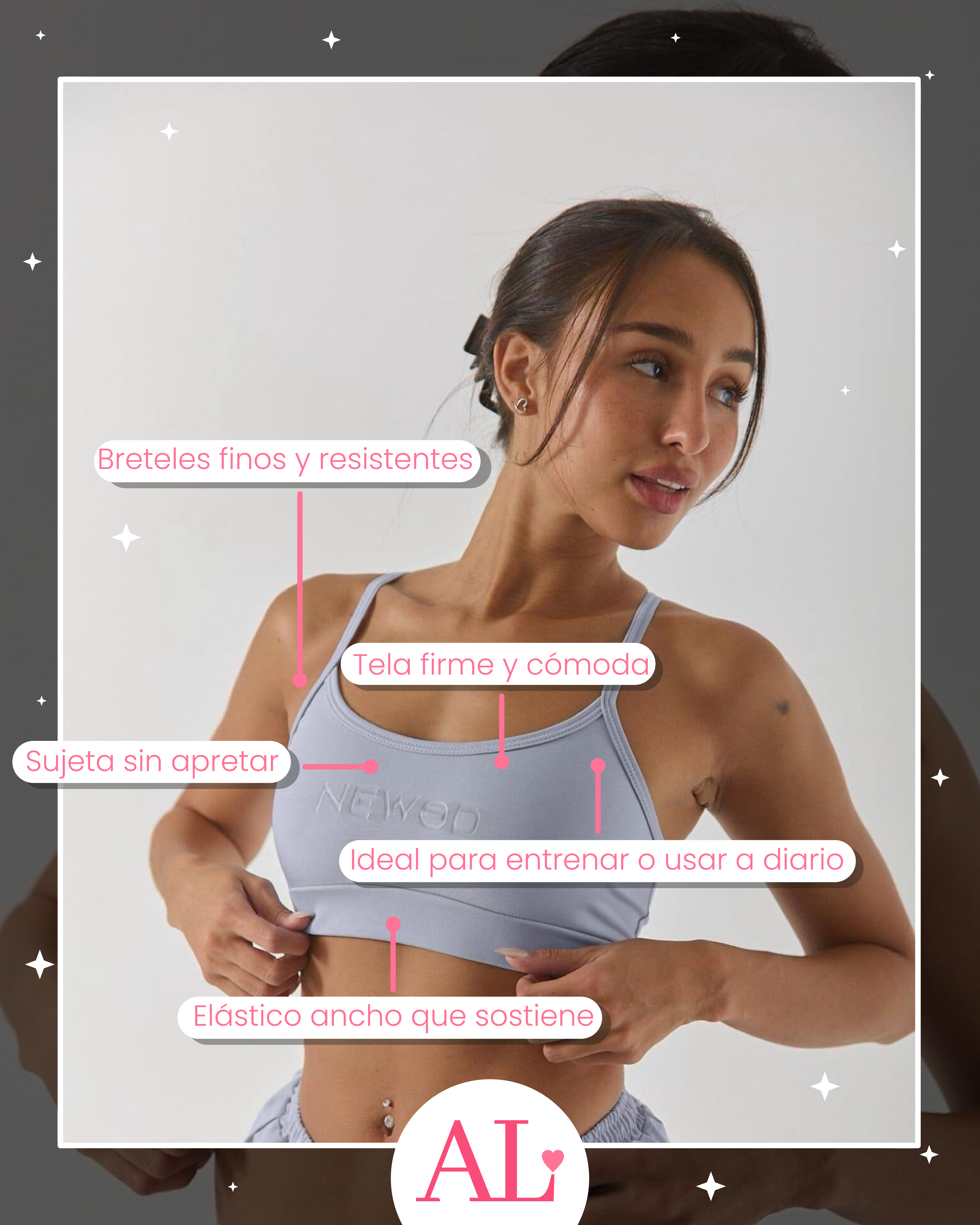 - Lleva un elástico ancho que sostiene de verdad 💪🏼 No se mueve y te da esa sujeción que necesitás para sentirte segura en cada movimiento.