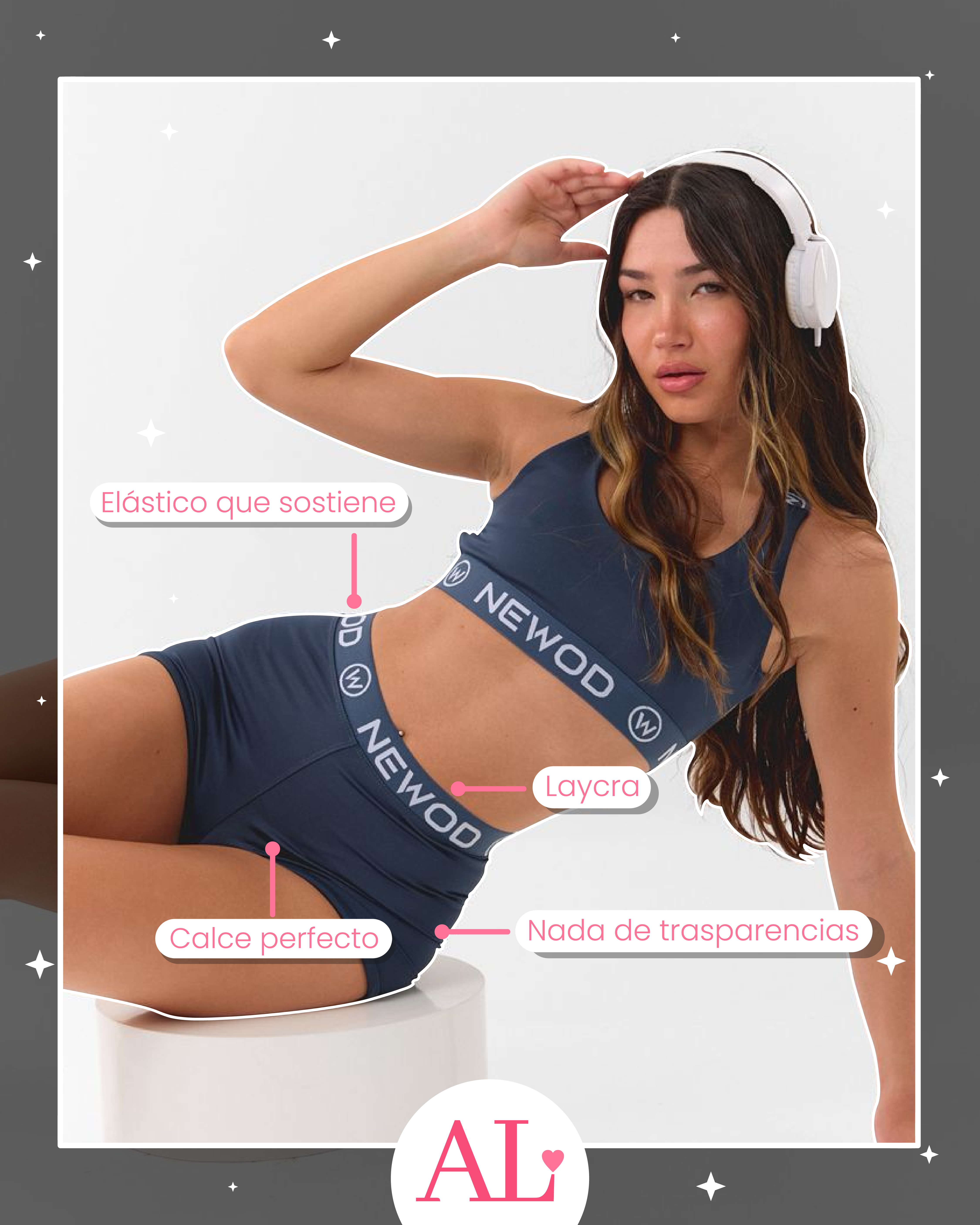 - Sosten: lleva un elástico ancho inferior, a juego con los breteles y con detalle de marca, que aporta aún más sujeción y hace que el top no se mueva mientras entrenás, caminás o te movés.